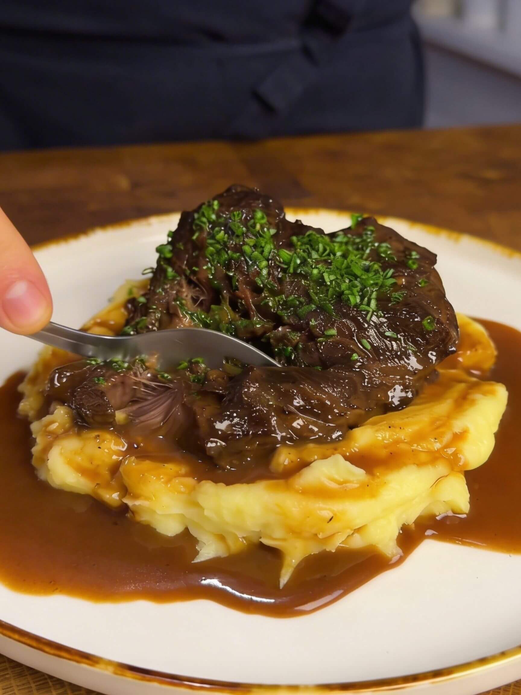 Wyjątkowa struktura, wysoka zawartość kolagenu i głęboki, intensywny smak - to wszystko sprawia, że po długim duszeniu mięso jest bardzo delikatne i wręcz rozpływa się w ustach.