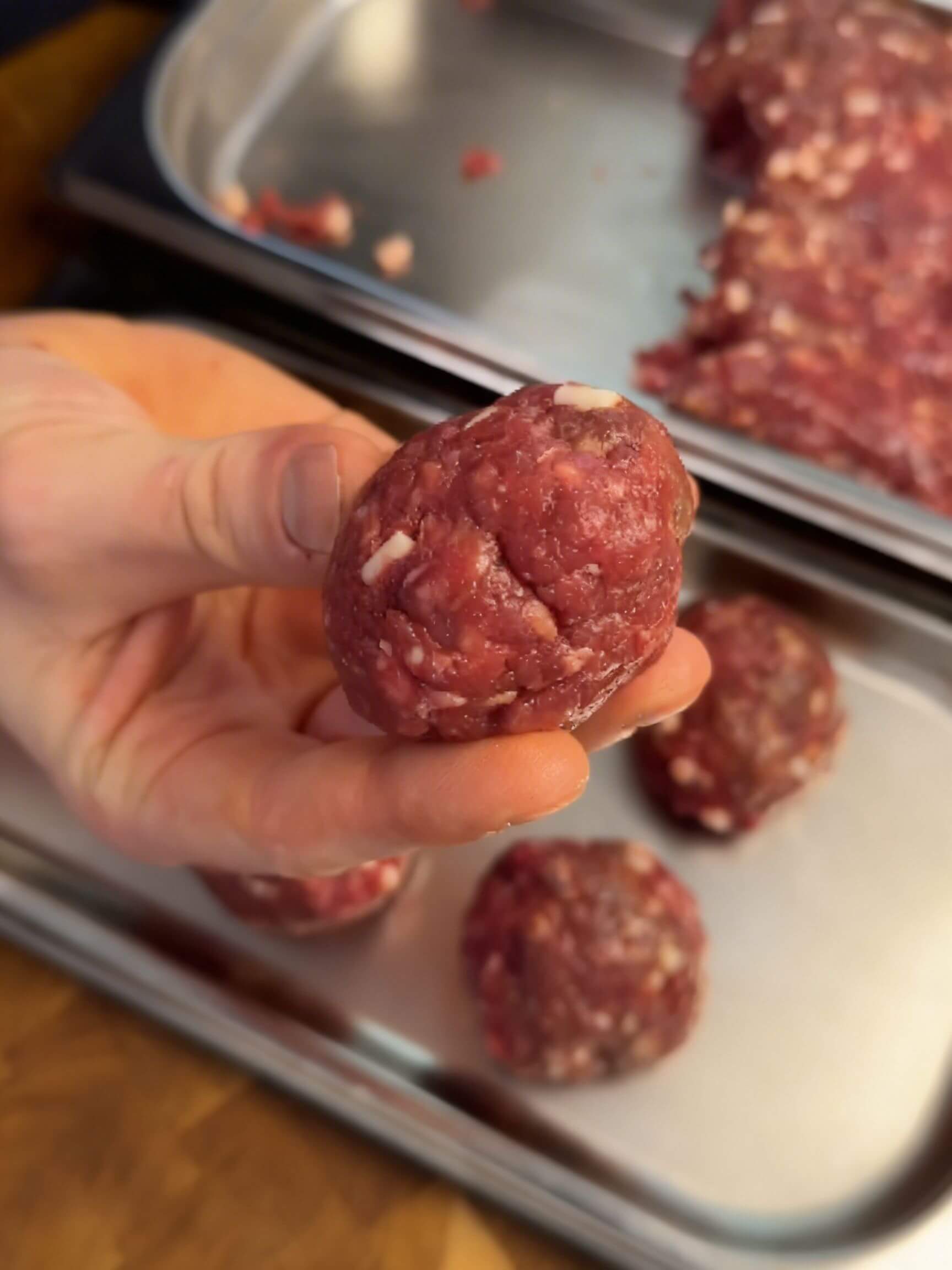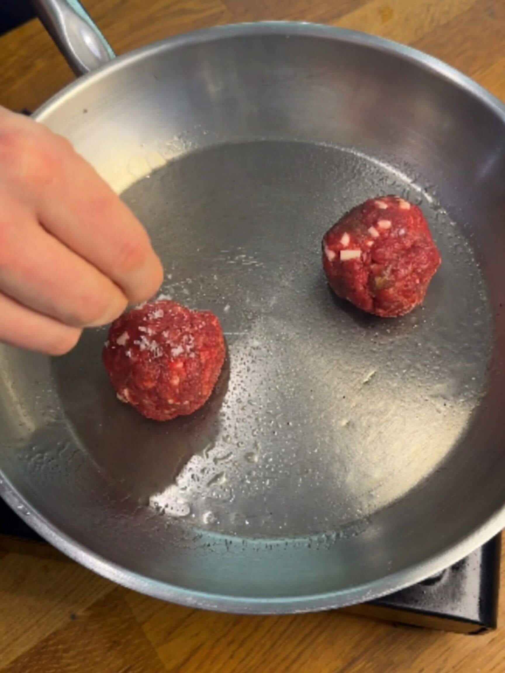 Z mielonej wołowiny formujemy luźne kulki o wadze około 80 gramów. Nie ugniatamy ich zbyt mocno - mięso powinno pozostać lekkie i napowietrzone.